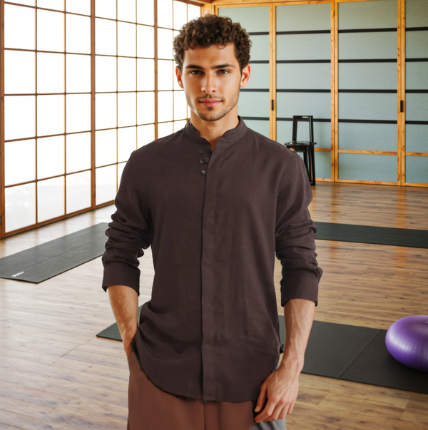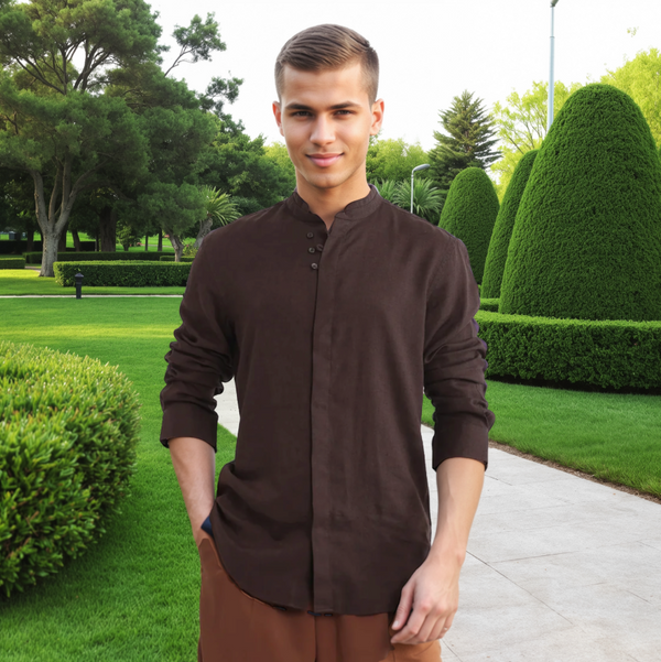 - Uniquely designed amalgamation of mandarin collar with turkish three button neck and button loop closure along the placket.