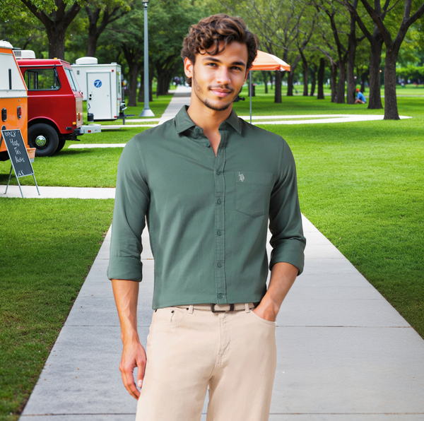 - Distinctive Dobby Texture creates subtle, geometric patterns directly into the cotton, giving the shirt a refined tactile quality and visual depth.