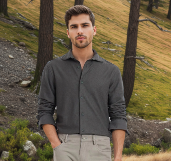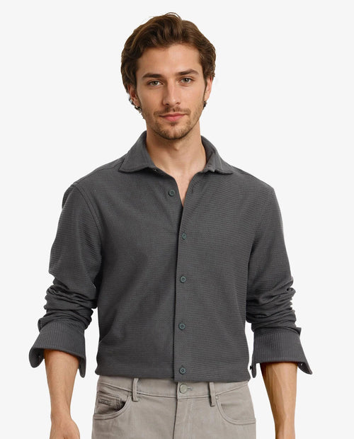 - Textured knitted shirt gives comfortable yet unique style