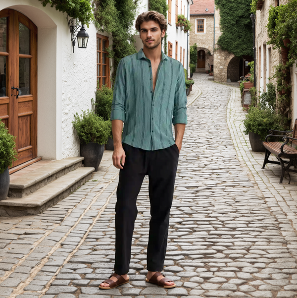 This white linen shirt gives classy look without being too formal. It pretty much works in different occasion. The exotic fabric is the real deal.